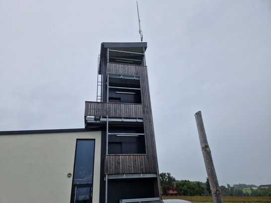 Der Schlauchturm ist insgesamt ca. 11 m hoch, damit können mittels automatischen Schlauchaufzug standardmäßig bis zu 20 m lange Schläuche getrocknet werden. Zusätzlich zur Schlauchtrocknung wurde der Schlauchturm auch als Übungsanlage vor allem für die Höhenretter, als auch für den Leiterdienst ausgeführt. Dazu wurden drei Podeste an der Außen- und Innenseite des Turms montiert. Am Dach des Turms befindet sich auch die gesamte Alarmierungsanlage der Feuerwehr (WAS- und Funkantennen und Zivilschutzsirene).
