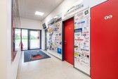 Im Eingangsbereich unseres Feuerwehrhauses befindet sich ein „Ausgrückt“-Taster, welcher beim Drücken im Einsatzfall die Einsatzannahme an die Landeswarnzentrale rückmeldet. Darüber befindet sich ein Bildschirm, welcher den Einsatzgrund und den Einsatzort anzeigt. Weiters befindet sich im Eingangsbereich die Bedieneinheit der Brandmeldeanlage sowie die Zeitschiene mit der Gründungsgeschichte, der zeitlichen und technischen Entwicklung unserer Feuerwehr und eine Tafel unserer zahlreichen Sponsoren.