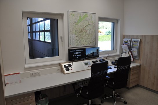 In der Einsatzzentrale befinden sich alle Utensilien um den Einsatzleiter vor Ort zu unterstützen, sowie bei Großschadenslagen die Einsatzaufnahme und -abwicklung zu koordinieren. Dazu stehen zwei Florianstationen, Kartenmaterial, Alarm-, Lage- und Brandschutzpläne sowie zahlreiche Formulare in gedruckter Form als auch digital zur Verfügung. Gleichzeitig wird die Zentrale auch als Büro für das Kommando und erweiterte Kommando genützt.